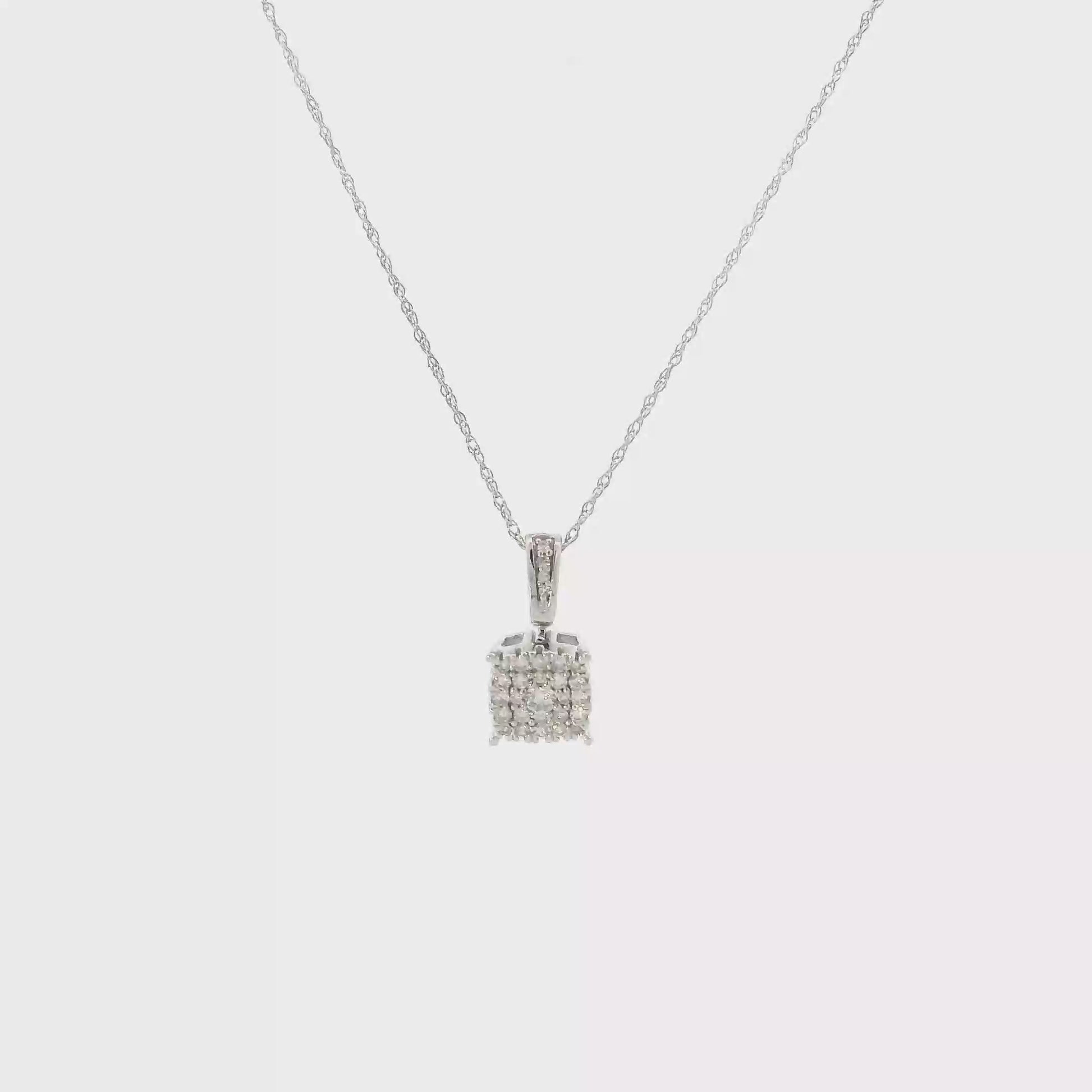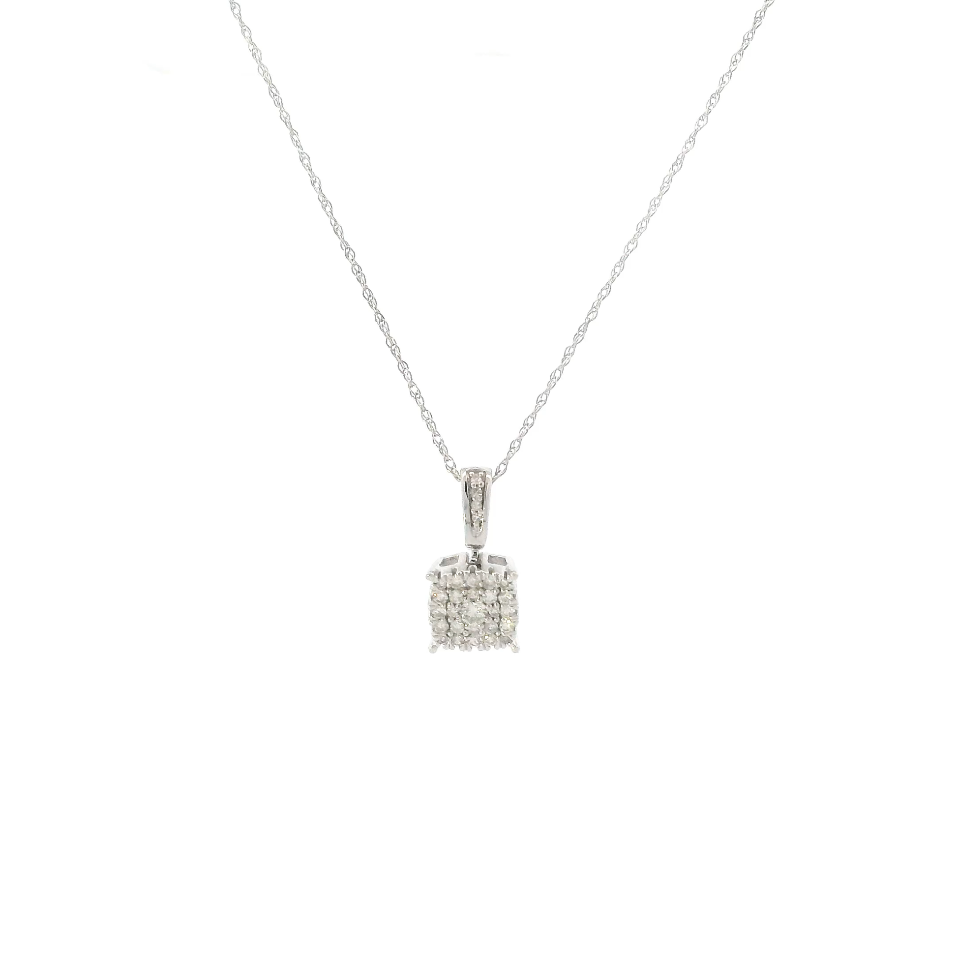10K White Gold Diamond Square Pendant & 18" Rope Chain - 0.03ct