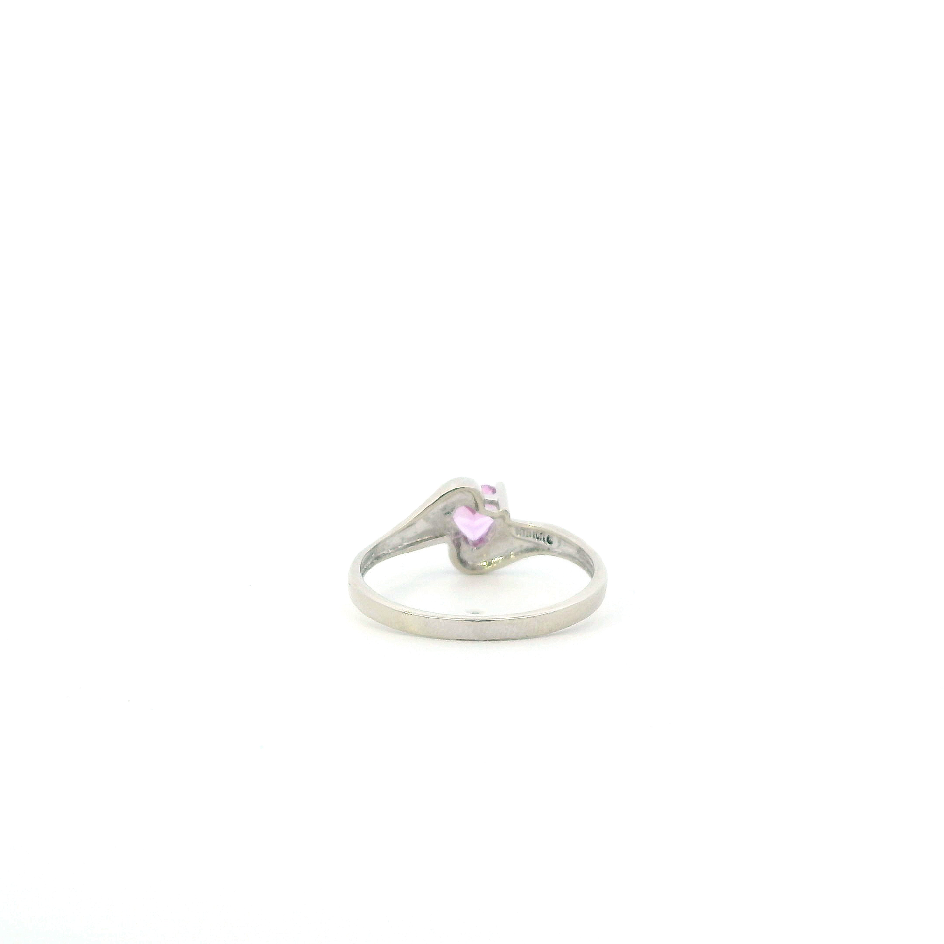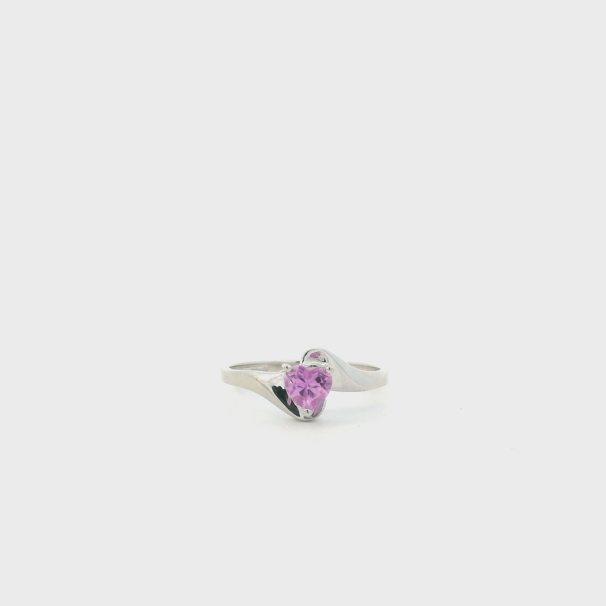 This is a beautiful gold heart pink sapphire ring that is in clean preowned condition. It has been authenticated and polished by our in-house goldsmith / gemologist.