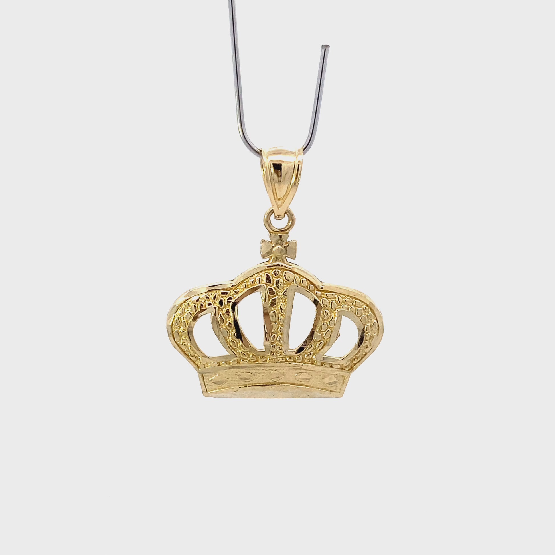 This is a beautiful gold diamond cut crown pendant that is in clean condition. It has been authenticated and polished by our in-house goldsmith.