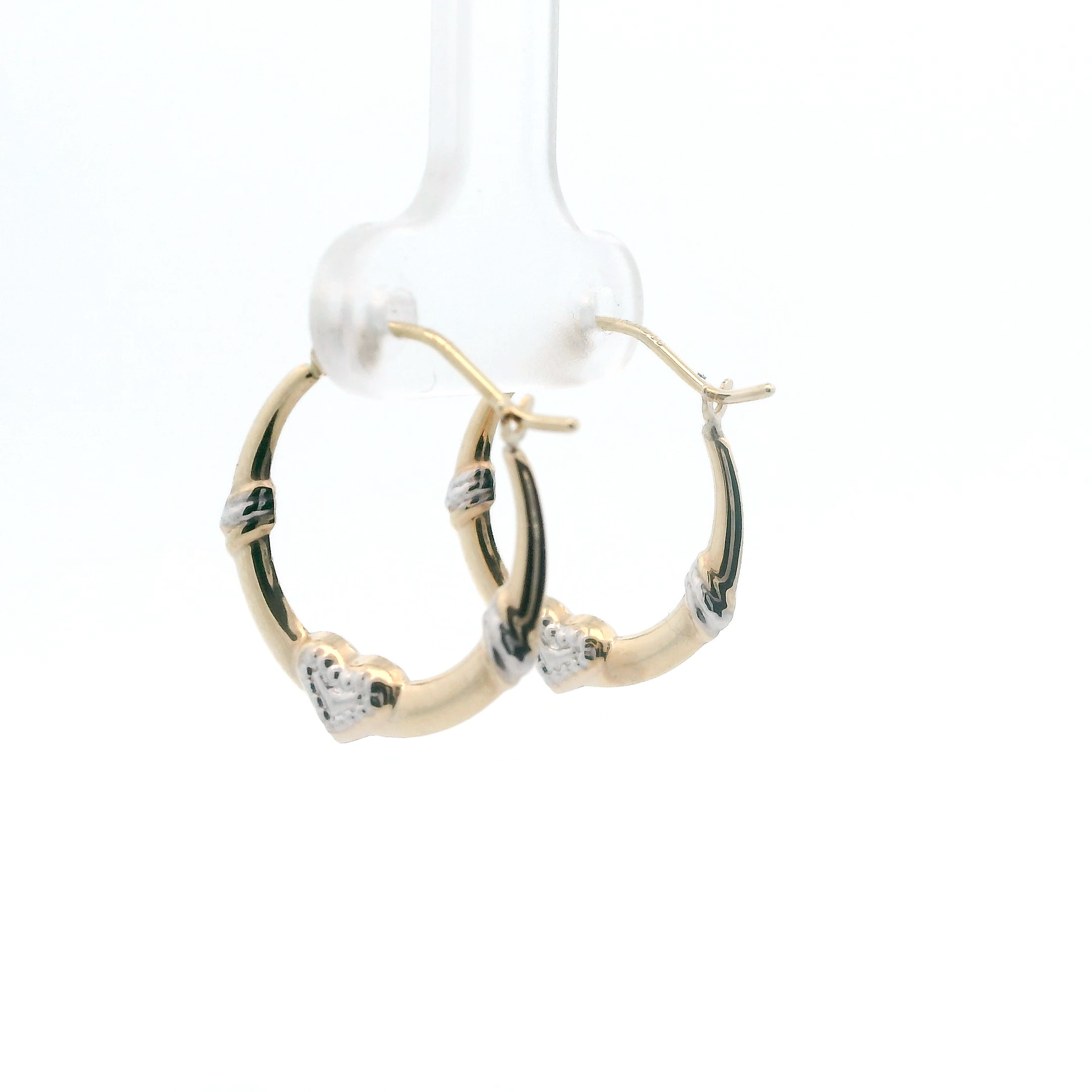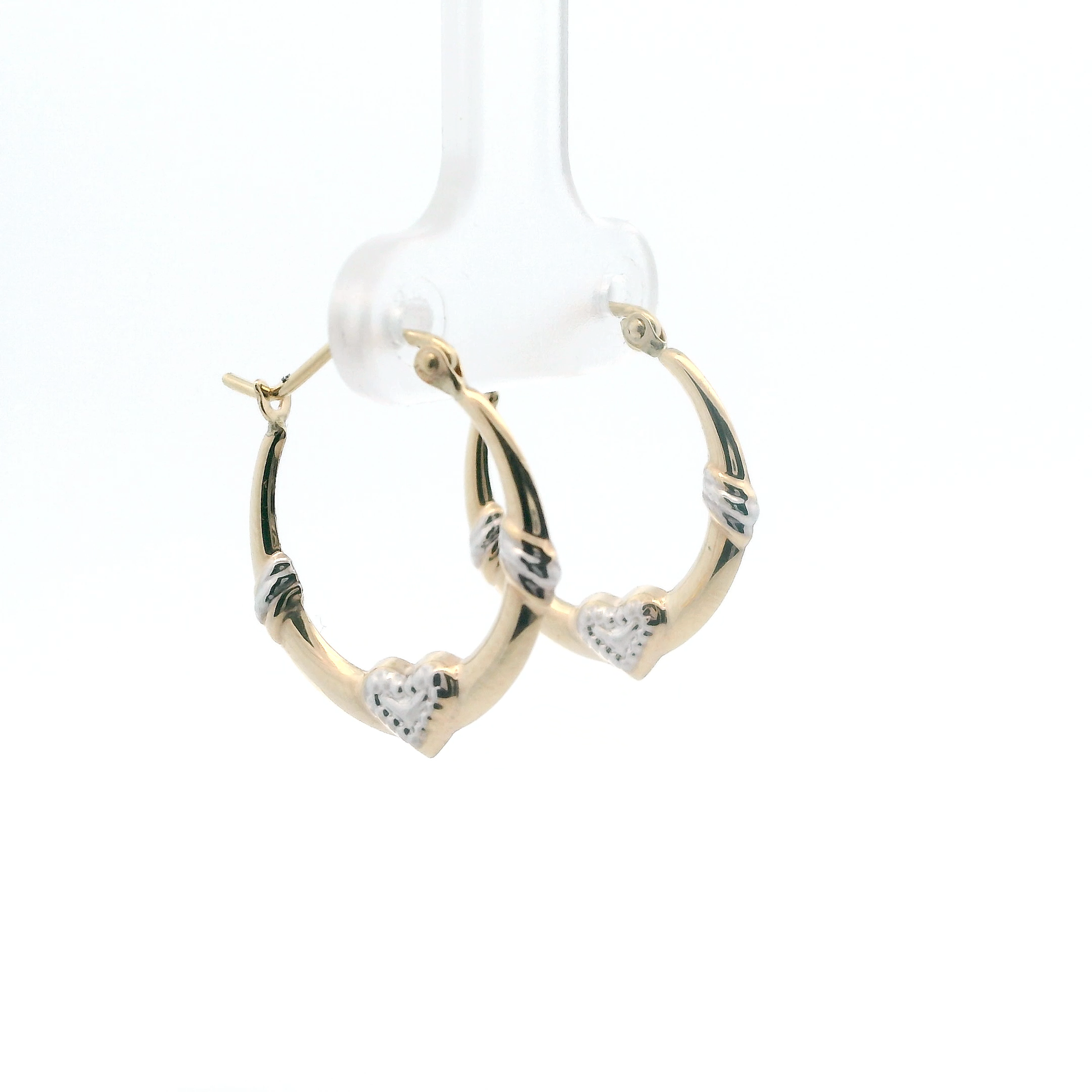 10K Yellow Gold Hollow Heart Hoop Earrings