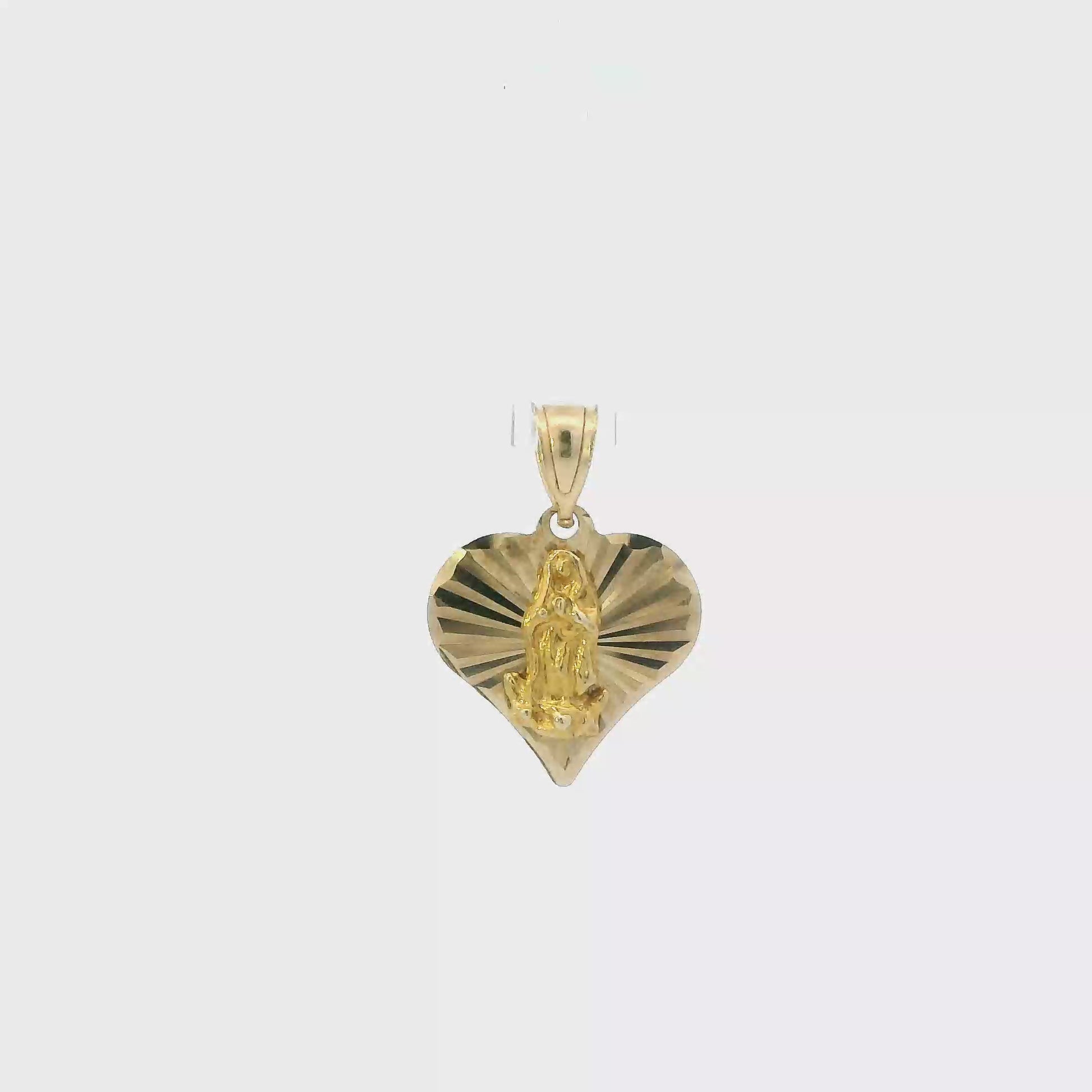 10K Yellow Gold Virgin Mary Heart Pendant