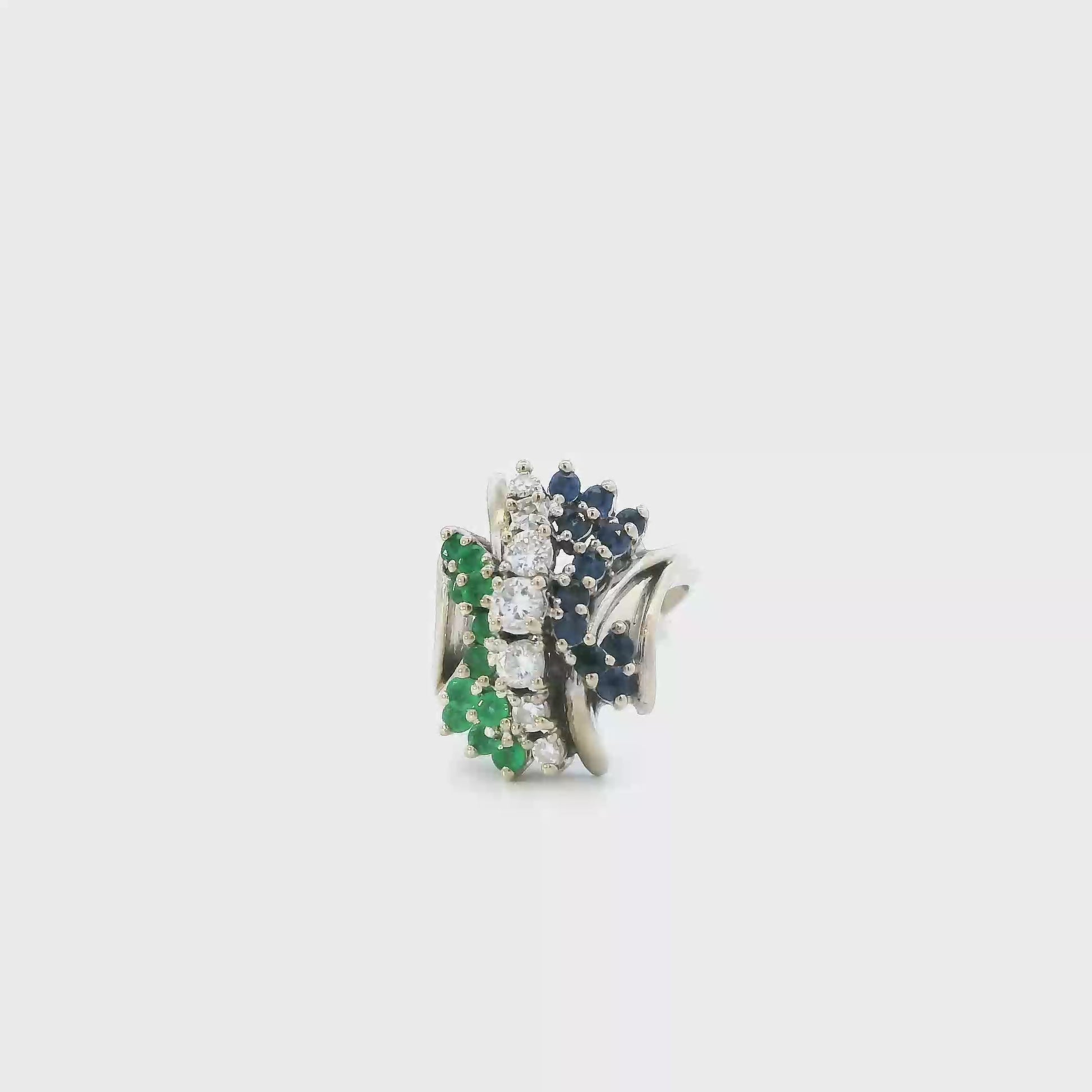14K White Gold Diamond, Sapphire & Emerald Women's Ring -0.43ct