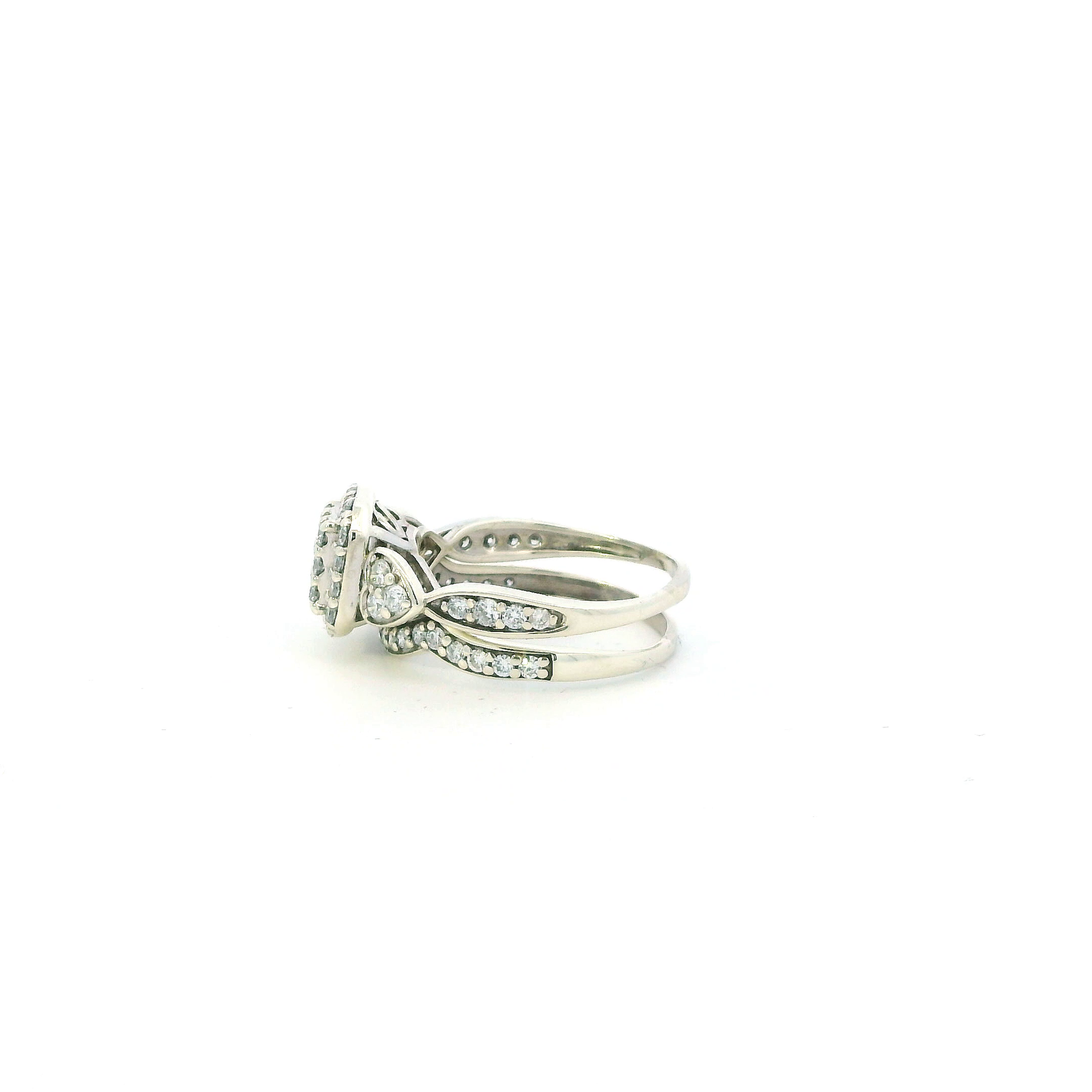 14K White Gold Lab Grown Diamond Engagement & Wedding Ring Set - 0.89ct