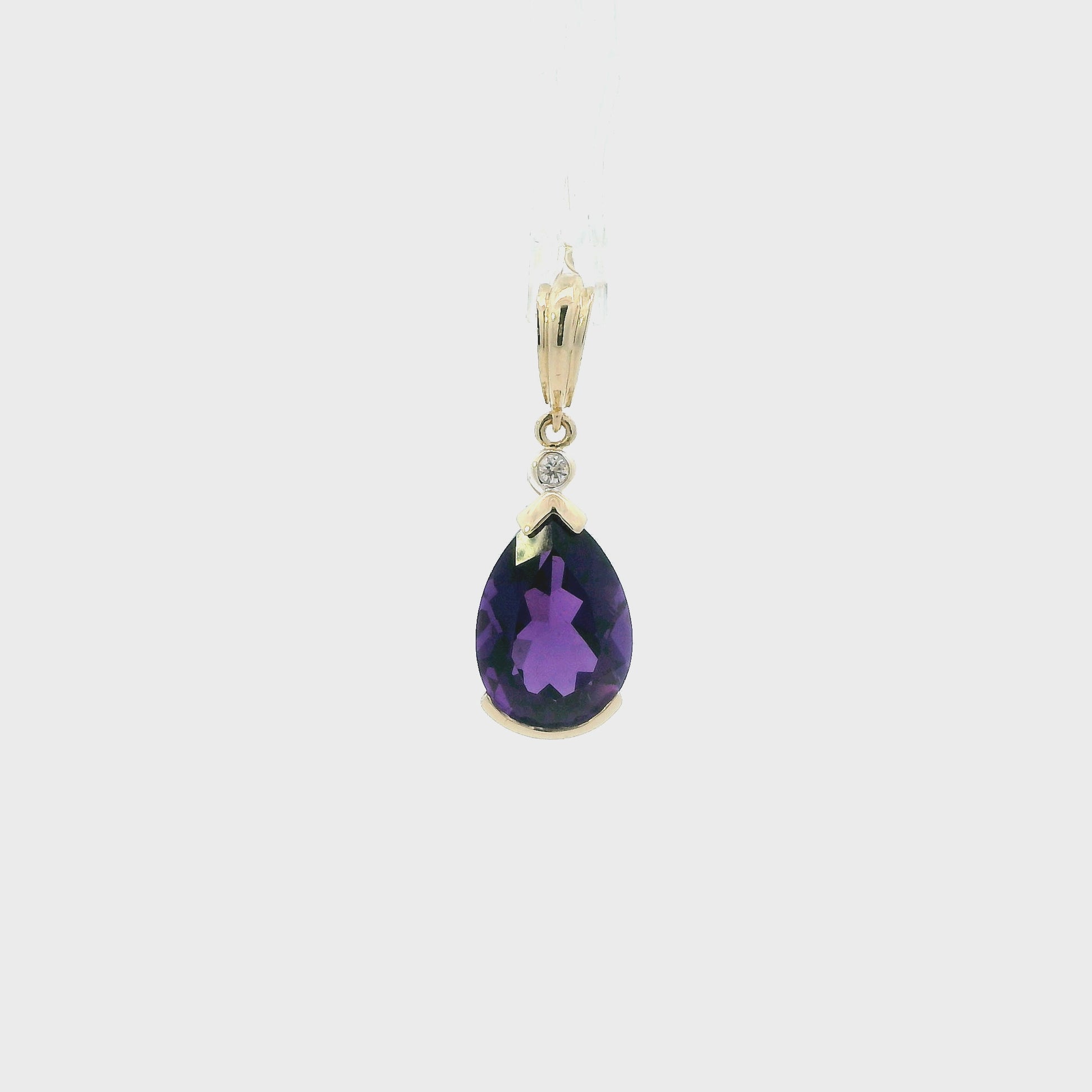 14K Yellow Gold Amethyst & Diamond Pendant - 0.03ct