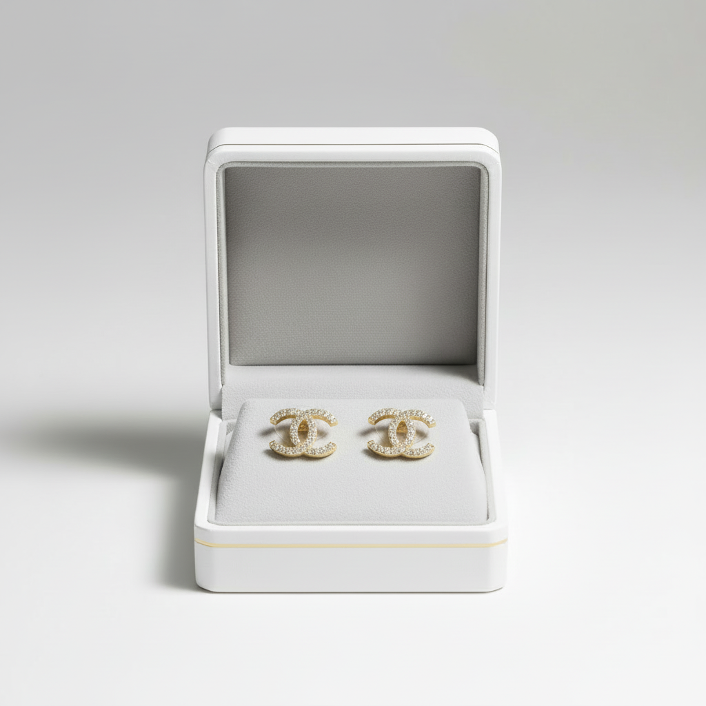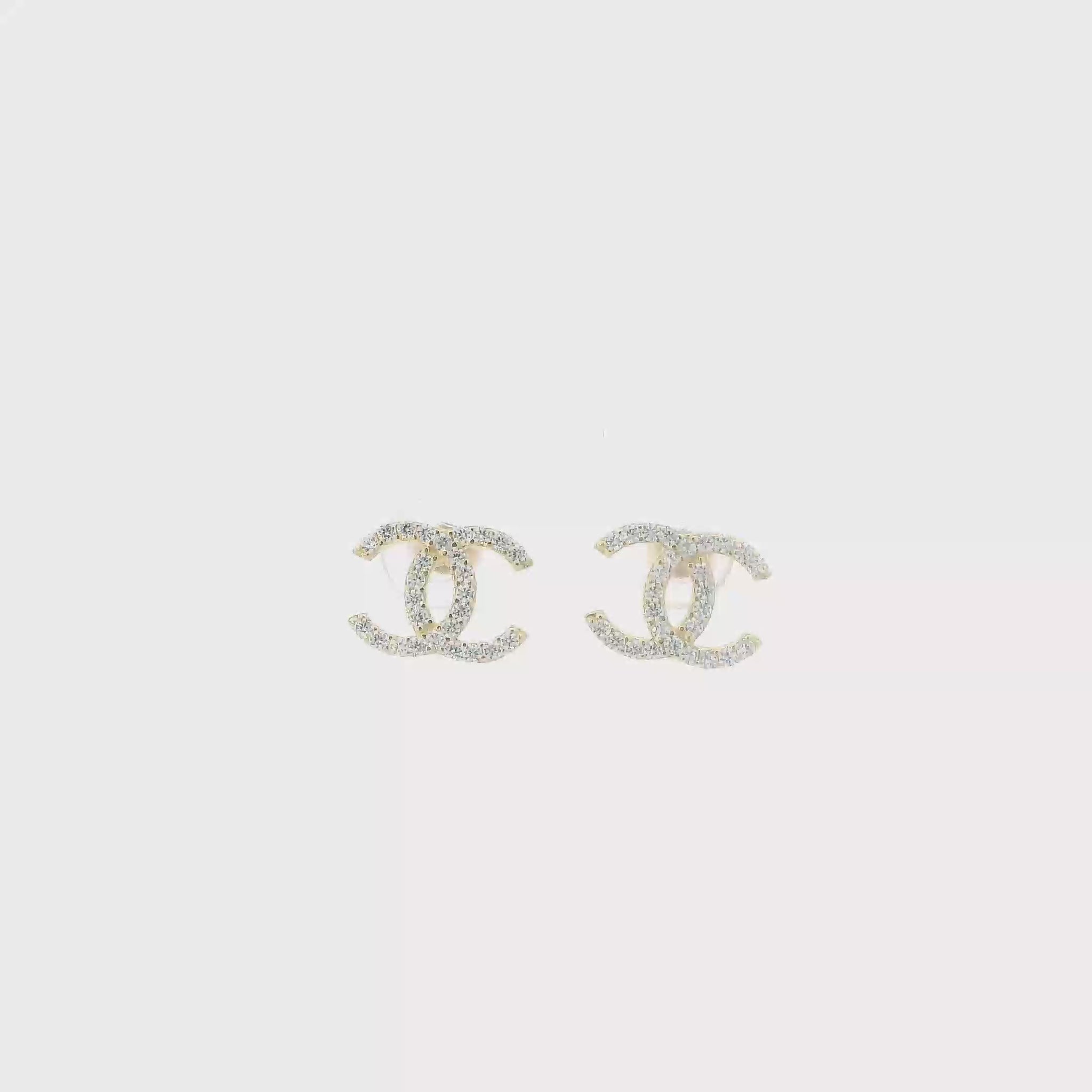 This is a beautiful gold "CC" stud earring set that is in clean preowned condition. It has been authenticated and polished by our in-house goldsmith.