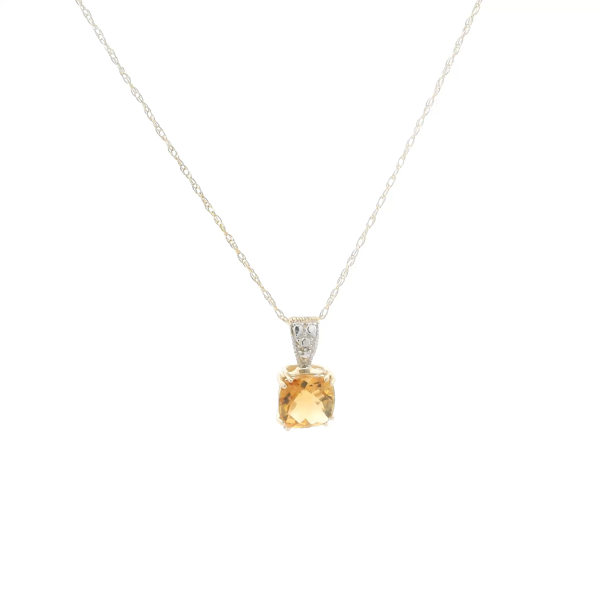 This is a beautiful gold citrine pendant & cable chain that is in clean preowned condition. It has been authenticated and polished by our in-house goldsmith / gemologist.