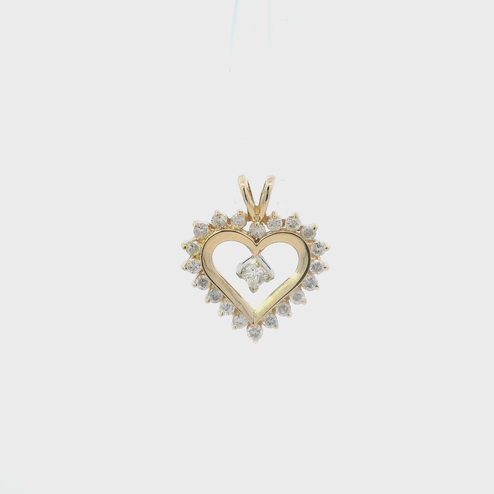 14K Yellow Gold Diamond Heart Pendant -1.23ct