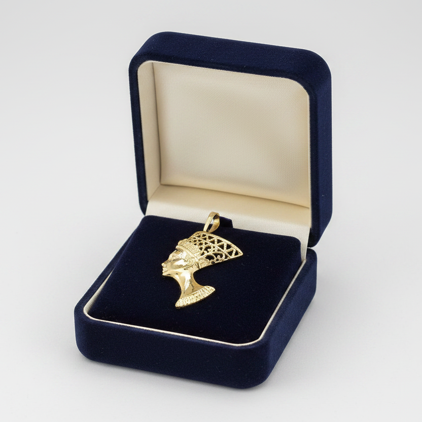 This is a beautiful gold Nefertiti pendant that is in clean preowned condition. It has been authenticated and polished by our in-house goldsmith / gemologist.
