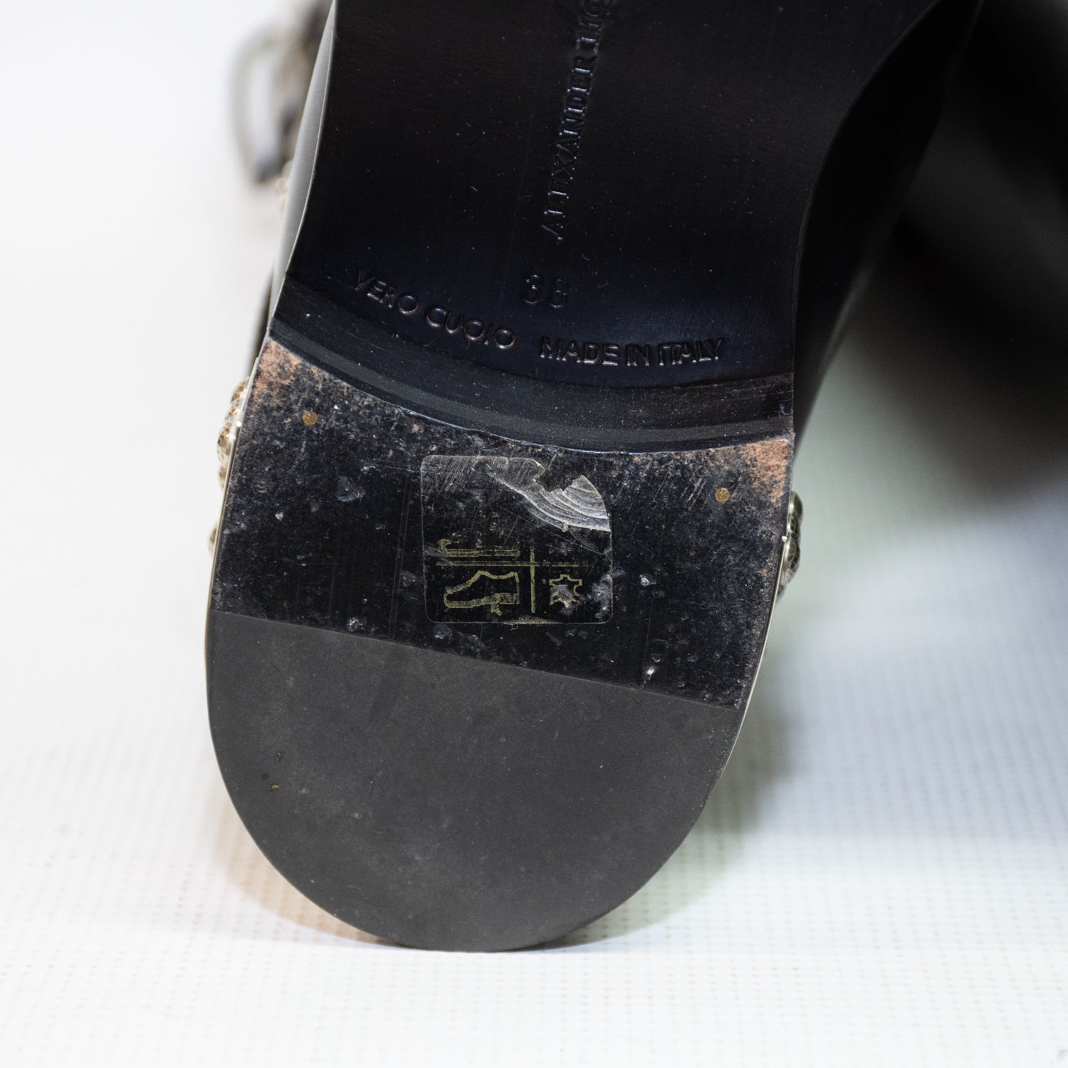 Alexander McQueen 470587 Studded Accents Combat Leather Boots