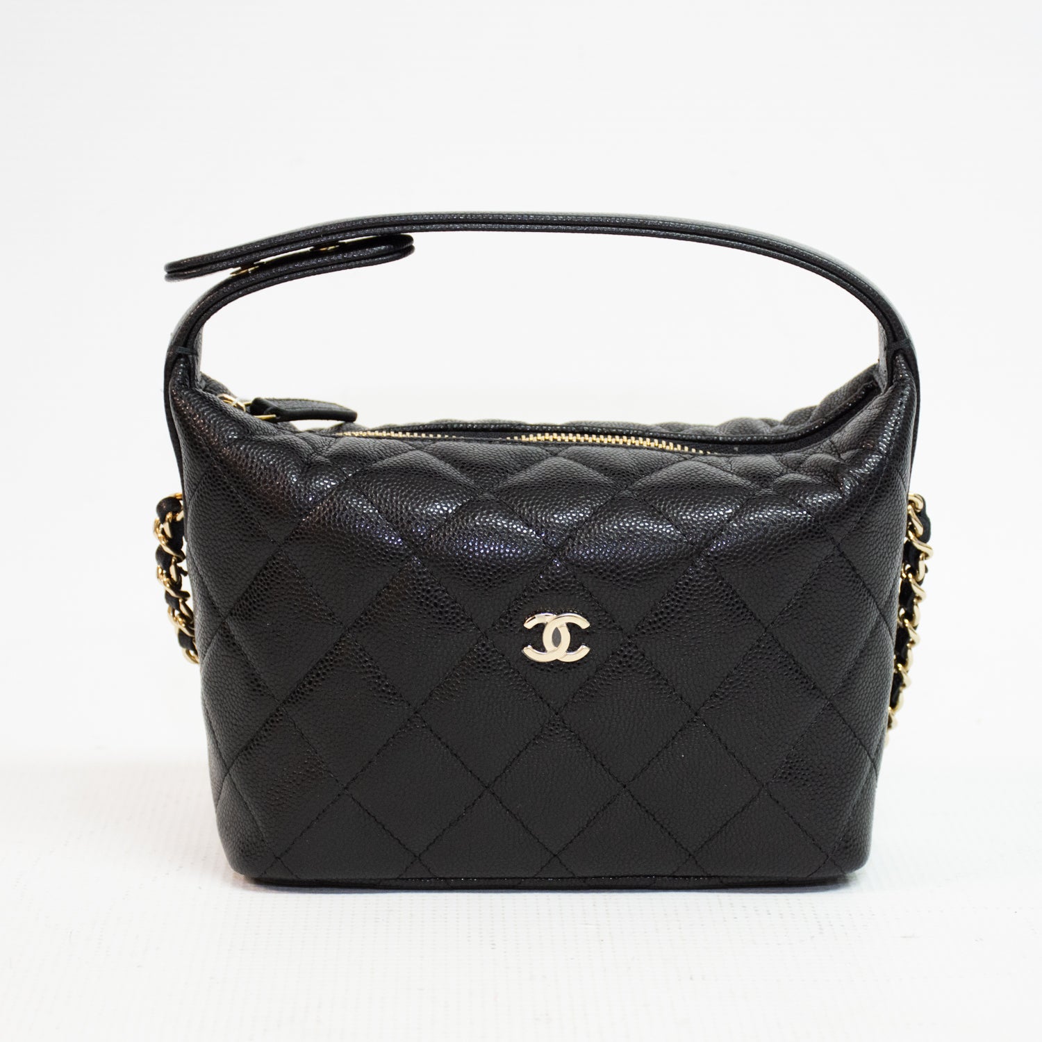 Chanel Cavier Leather Quilted Hobo Clutch - Black