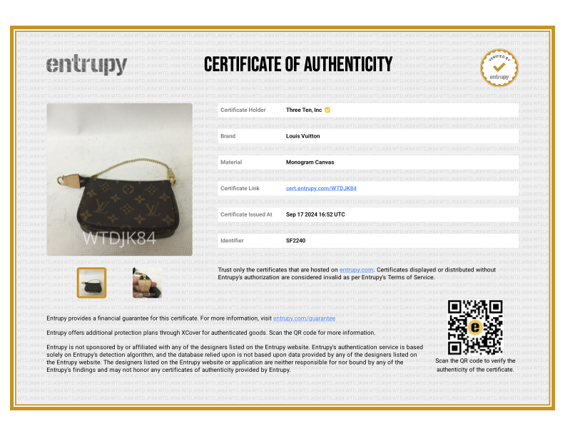 Viene con autenticidad de terceros Entrupy.