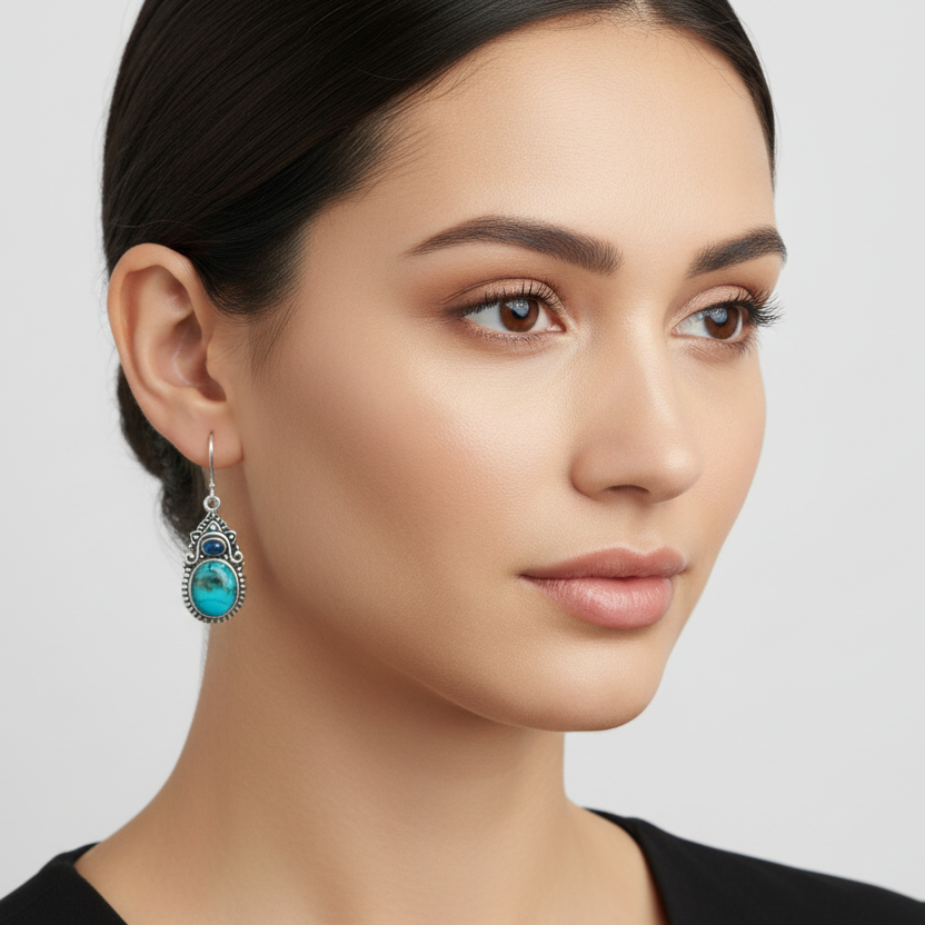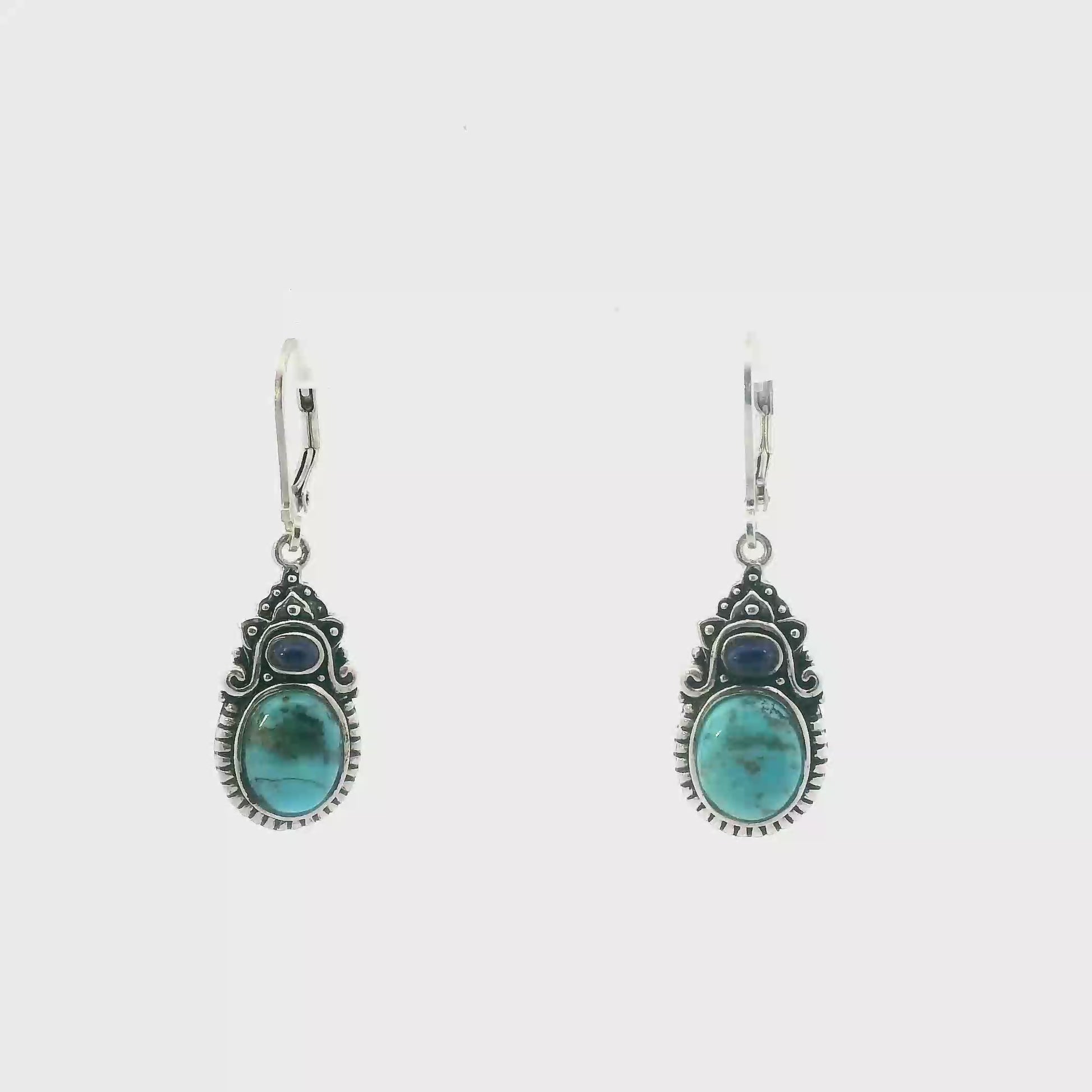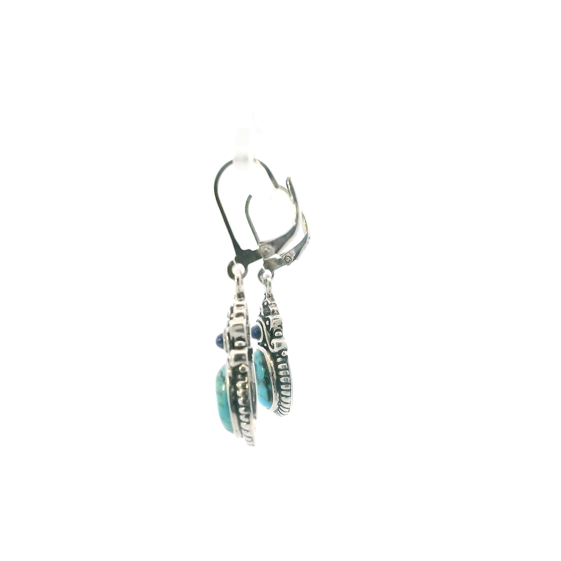 Sterling Silver Dangle Turquoise & Lapis Earrings